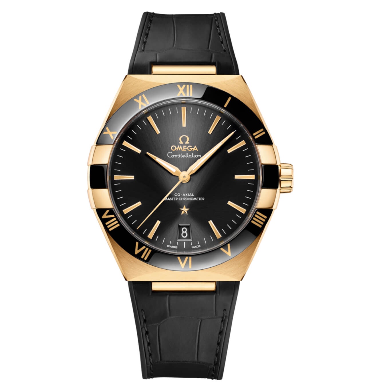 . • Boîtier : Acier inoxydable de 41 mm détails en or jaune 18K, associant robustesse et élégance. • Lunette : Céramique noire polie avec chiffres romains dorés, soulignant un style classique et moderne. • Cadran : Vert profond soleillé avec aiguilles et index dorés, offrant un contraste saisissant. • Date : Fenêtre discrète à 6 heures pour une touche pratique et élégante. • Bracelet : Cuir noir , élégant et confortable, avec boucle déployante. • Verre : Saphir bombé anti-reflet double face, résistant aux rayures. • Étanchéité : Résistante jusqu’à 50 mètres, idéale pour une utilisation quotidienne.