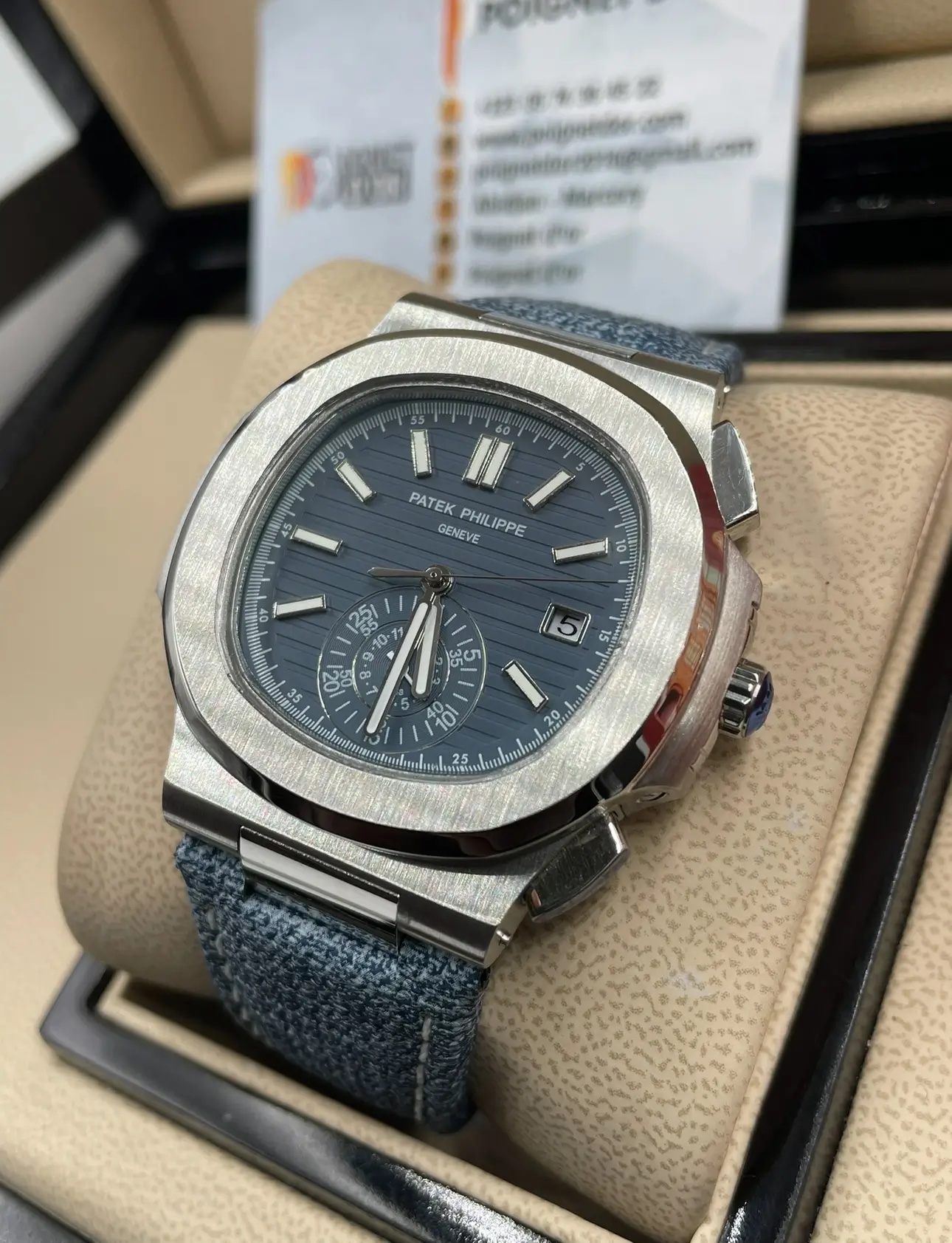 Bleu acier avec motif horizontal Nautilus,